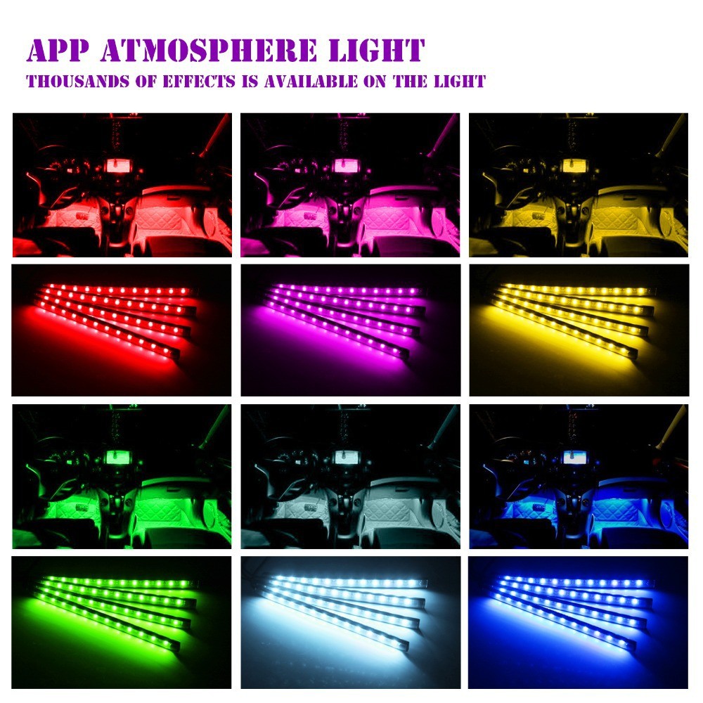 产品名称:手机APP蓝牙控制氛围灯带开关5050 12led一拖四氛围灯脚底灯车内气氛灯