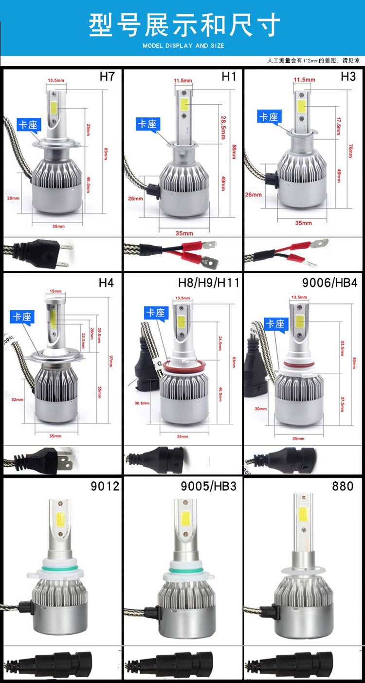 颜色H1,H3,H4,H7,H8/H9/H11,9005,9006,9012,881/880,9004,9007,H13,其它型号请联系客服,量大价格另议