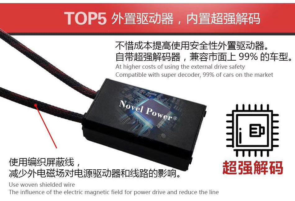 4.驱动外置,EMC抗干扰,CANBUS、高温、高压、短路保护,耐高温纯铜线材,原车级标准接头!
