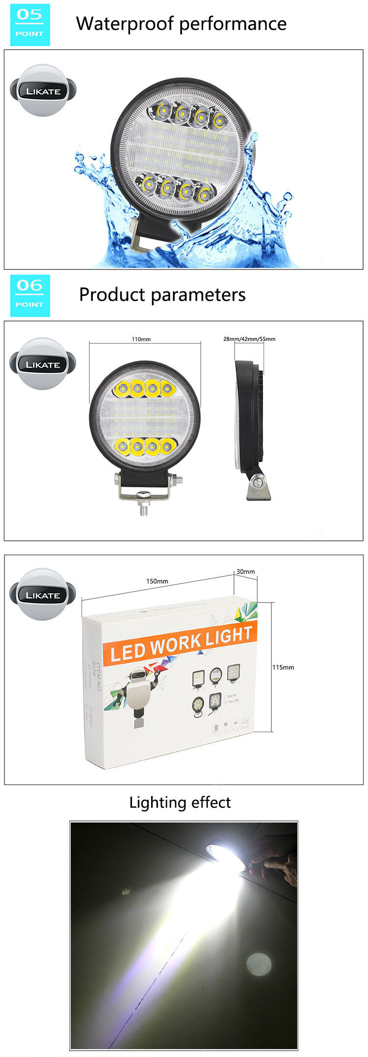 产品应用: 越野车,沙滩车,货车,船,大巴,挖掘机,伐木机,压路机,推土机,吊车,采矿车,消防车,警车,抢险车,通信车,军佣指挥车,叉车,火车,坦克等车辆加强照明使用.