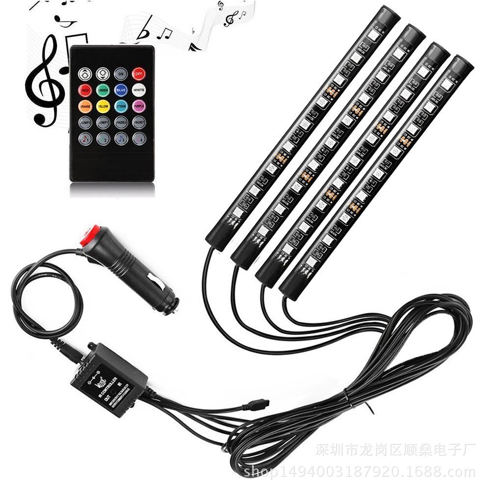 汽车室内装饰灯 声控气氛灯脚底灯 36SMD遥控七彩RGB氛围灯 通用