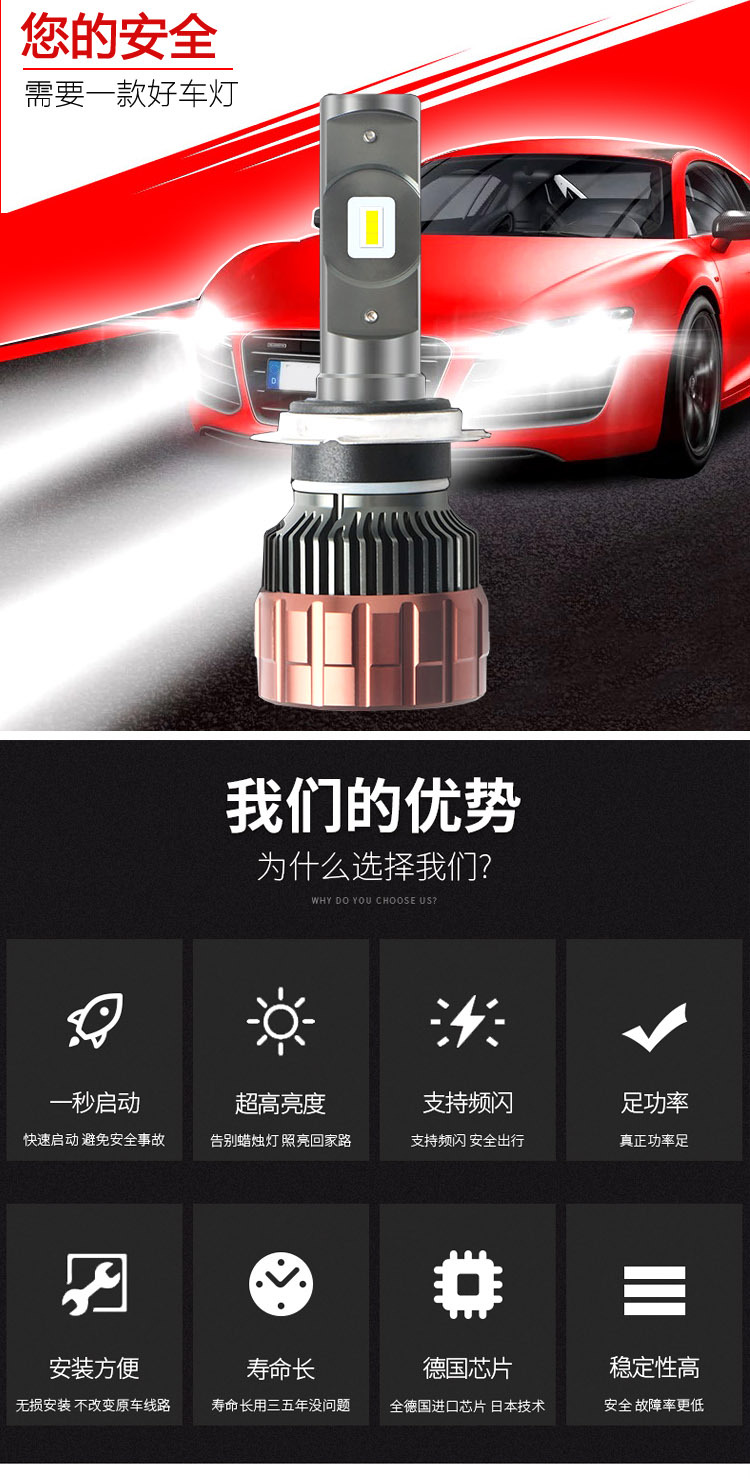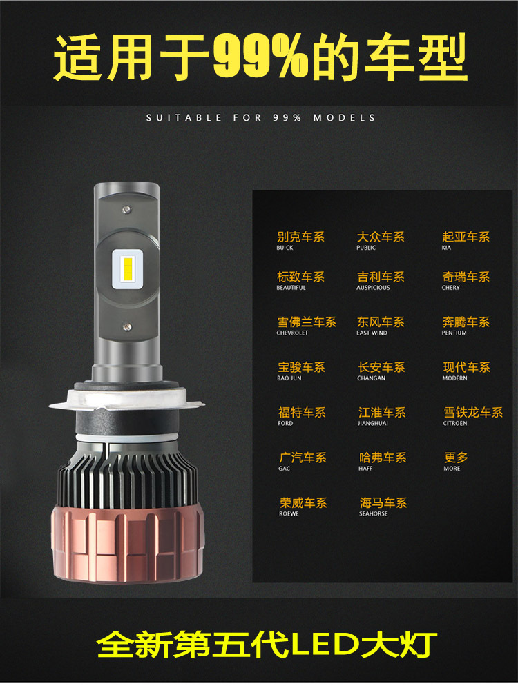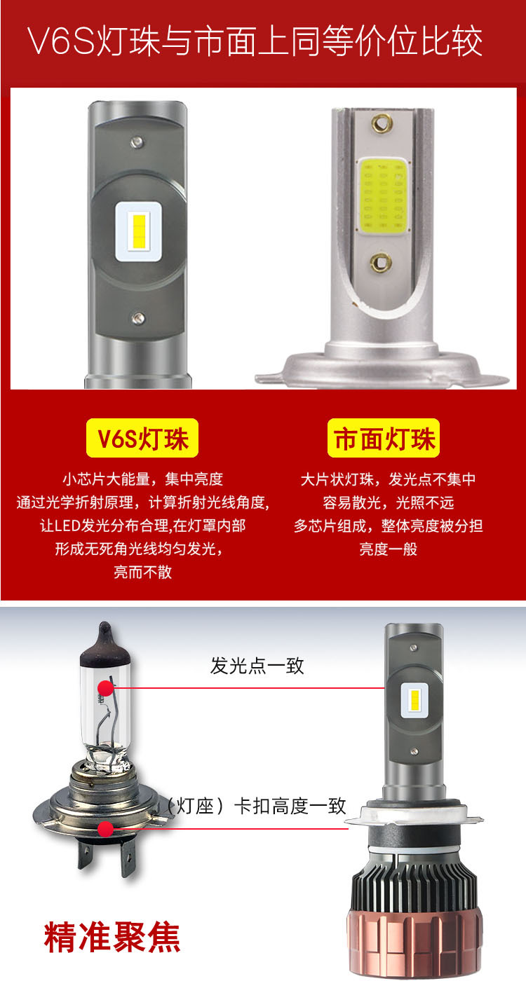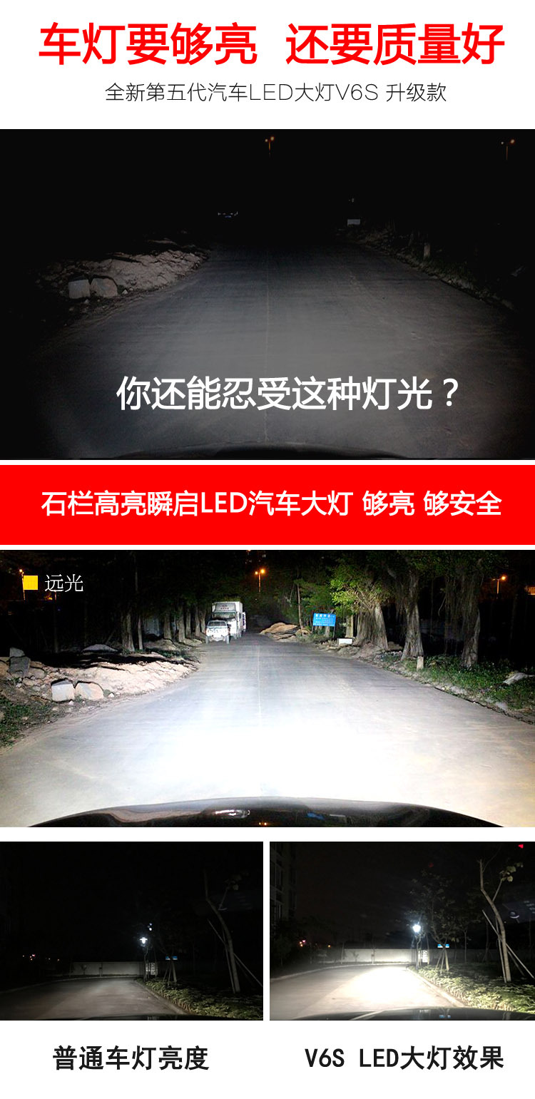 汽车led大灯远近光LED汽车大灯H1 H3 H7 H8 H11 9005 9006 led前照灯V6款