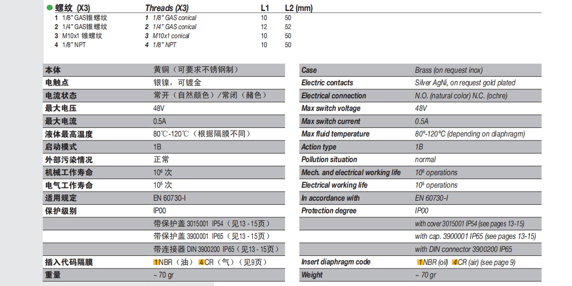 产品型号:各型号各量程基本都有现货, 常开/常闭价格一样