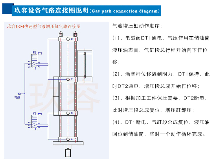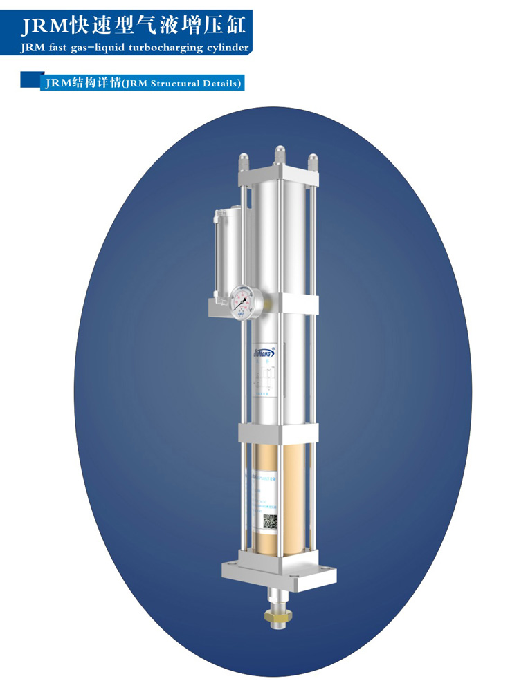 JRM快速型气液增压缸缸体细长,动作速度较标准型气液增压缸快30%,采用油气隔离设计,液压油与压缩空气严格隔离,快速型增压缸可用于高频动作场合,在对纵向长度无较大限制的场合得到广泛应用。