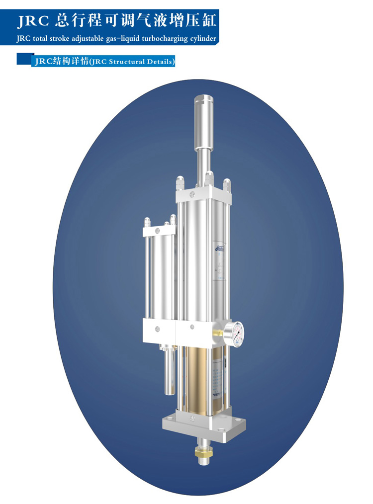 JRC总行程可调气液增压缸有可调节预压行程,可根据机台和模具 的高低来调节预压行程,精细精确。