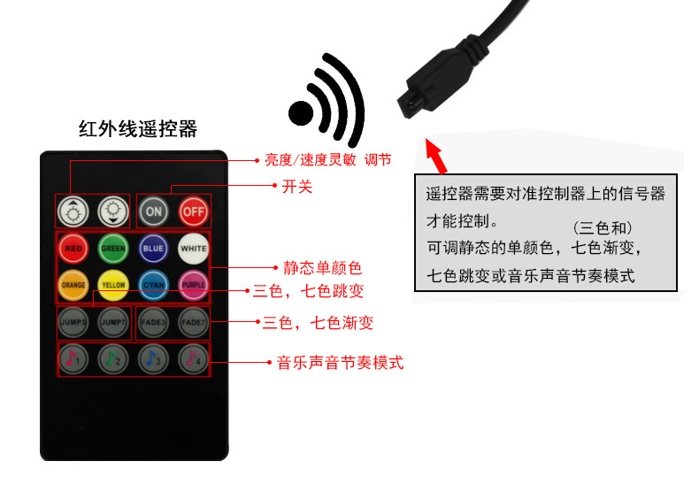 产品名称:拖四声控七彩气氛灯(RGB氛围灯)