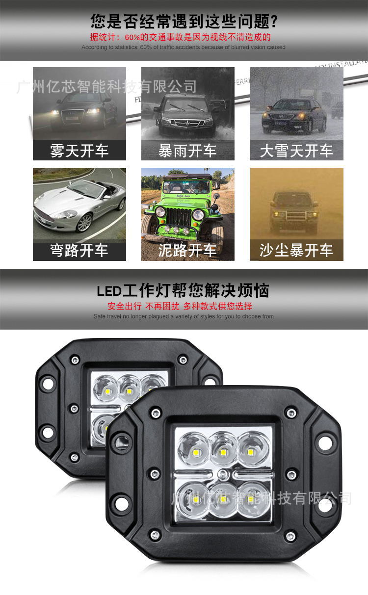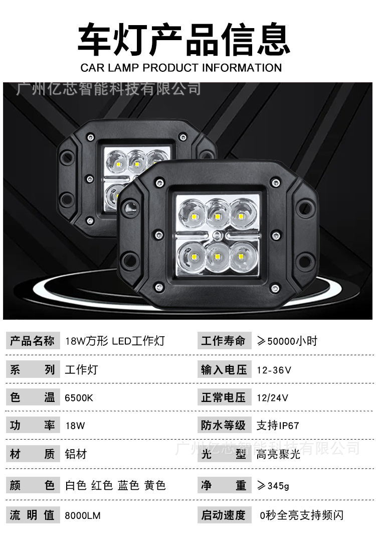本网页所展示的有关【跨境专供4英寸6LED18W汽车LED工作灯越野车改装顶灯辅助灯日行灯_汽车灯具_广州亿芯智能科技有限公司】的信息/图片/参数等由全球零部件网的会员【广州亿芯智能科技有限公司】提供,由全球零部件网会员【广州亿芯智能科技有限公司】自行对信息/图片/参数等的真实性、准确性和合法性负责,本平台(本网站)仅提供展示服务,请谨慎交易,因交易而产生的法律关系及法律纠纷由您自行协商解决,本平台(本网站)对此不承担任何责任。您在本网页可以浏览【跨境专供4英寸6LED18W汽车LED工作灯越野车改装顶灯辅助灯日行灯_汽车灯具_广州亿芯智能科技有限公司】有关的信息/图片/价格等及提供【跨境专供4英寸6LED18W汽车LED工作灯越野车改装顶灯辅助灯日行灯_汽车灯具_广州亿芯智能科技有限公司】的商家公司简介、江南(中国)等信息。
