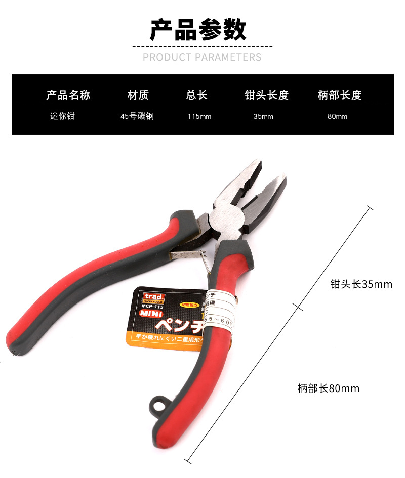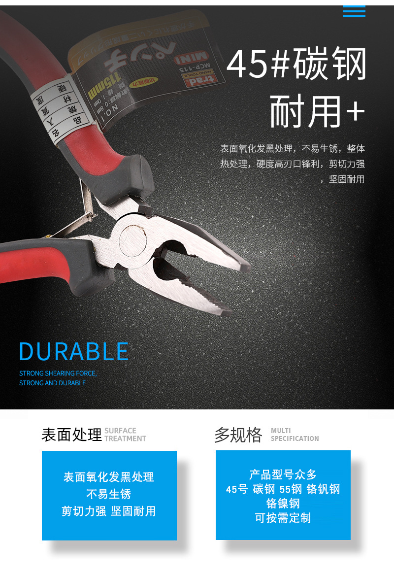 本网页所展示的有关【厂销45号碳钢迷你钢丝钳 4.5寸迷你钳 diy工具钳 手工专用_钳子类_张家港欧力保五金工具有限公司】的信息/图片/参数等由全球零部件网的会员【张家港欧力保五金工具有限公司】提供,由全球零部件网会员【张家港欧力保五金工具有限公司】自行对信息/图片/参数等的真实性、准确性和合法性负责,本平台(本网站)仅提供展示服务,请谨慎交易,因交易而产生的法律关系及法律纠纷由您自行协商解决,本平台(本网站)对此不承担任何责任。您在本网页可以浏览【厂销45号碳钢迷你钢丝钳 4.5寸迷你钳 diy工具钳 手工专用_钳子类_张家港欧力保五金工具有限公司】有关的信息/图片/价格等及提供【厂销45号碳钢迷你钢丝钳 4.5寸迷你钳 diy工具钳 手工专用_钳子类_张家港欧力保五金工具有限公司】的商家公司简介、江南(中国)等信息。