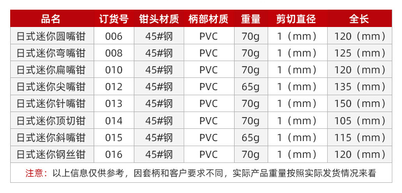 本网页所展示的有关【4.5寸 5寸多功能迷你扁嘴钳 手工钢丝斜嘴顶切钳五金工具迷你套装_钳子类_张家港新乐五金工具有限公司】的信息/图片/参数等由全球零部件网的会员【张家港新乐五金工具有限公司】提供,由全球零部件网会员【张家港新乐五金工具有限公司】自行对信息/图片/参数等的真实性、准确性和合法性负责,本平台(本网站)仅提供展示服务,请谨慎交易,因交易而产生的法律关系及法律纠纷由您自行协商解决,本平台(本网站)对此不承担任何责任。您在本网页可以浏览【4.5寸 5寸多功能迷你扁嘴钳 手工钢丝斜嘴顶切钳五金工具迷你套装_钳子类_张家港新乐五金工具有限公司】有关的信息/图片/价格等及提供【4.5寸 5寸多功能迷你扁嘴钳 手工钢丝斜嘴顶切钳五金工具迷你套装_钳子类_张家港新乐五金工具有限公司】的商家公司简介、江南(中国)等信息。