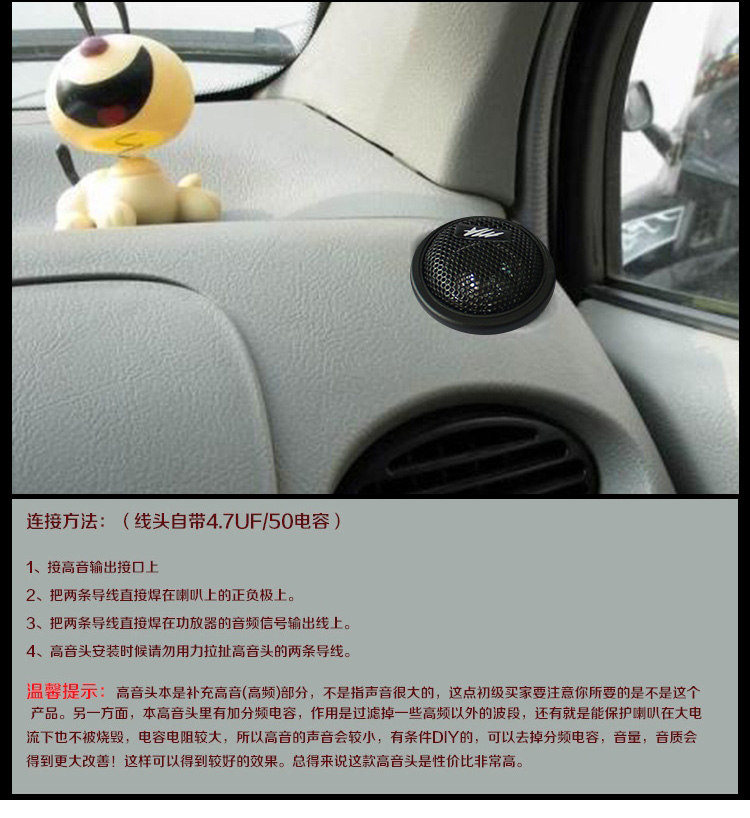 本网页所展示的有关【生产汽车高音喇叭音响改装高音仔发烧级丝膜车载小高音头扬声器_喇叭_广州锐田科技有限公司】的信息/图片/参数等由全球零部件网的会员【广州锐田科技有限公司】提供,由全球零部件网会员【广州锐田科技有限公司】自行对信息/图片/参数等的真实性、准确性和合法性负责,本平台(本网站)仅提供展示服务,请谨慎交易,因交易而产生的法律关系及法律纠纷由您自行协商解决,本平台(本网站)对此不承担任何责任。您在本网页可以浏览【生产汽车高音喇叭音响改装高音仔发烧级丝膜车载小高音头扬声器_喇叭_广州锐田科技有限公司】有关的信息/图片/价格等及提供【生产汽车高音喇叭音响改装高音仔发烧级丝膜车载小高音头扬声器_喇叭_广州锐田科技有限公司】的商家公司简介、江南(中国)等信息。