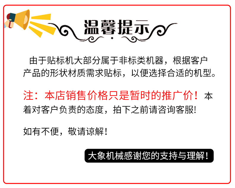 本网页所展示的有关【全自动平面贴标机 打码机纸箱盒子标签纸片卡片说明书 分页贴标机_贴体包装机_东莞市大象机械设备有限公司】的信息/图片/参数等由全球零部件网的会员【东莞市大象机械设备有限公司】提供,由全球零部件网会员【东莞市大象机械设备有限公司】自行对信息/图片/参数等的真实性、准确性和合法性负责,本平台(本网站)仅提供展示服务,请谨慎交易,因交易而产生的法律关系及法律纠纷由您自行协商解决,本平台(本网站)对此不承担任何责任。您在本网页可以浏览【全自动平面贴标机 打码机纸箱盒子标签纸片卡片说明书 分页贴标机_贴体包装机_东莞市大象机械设备有限公司】有关的信息/图片/价格等及提供【全自动平面贴标机 打码机纸箱盒子标签纸片卡片说明书 分页贴标机_贴体包装机_东莞市大象机械设备有限公司】的商家公司简介、江南(中国)等信息。