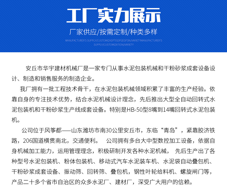 本网页所展示的有关【定做双嘴腻子粉包装机 全自动计量式包装机 水泥砂浆袋装灌装机_粉剂包装机_安丘市华宇建材机械厂】的信息/图片/参数等由全球零部件网的会员【安丘市华宇建材机械厂】提供,由全球零部件网会员【安丘市华宇建材机械厂】自行对信息/图片/参数等的真实性、准确性和合法性负责,本平台(本网站)仅提供展示服务,请谨慎交易,因交易而产生的法律关系及法律纠纷由您自行协商解决,本平台(本网站)对此不承担任何责任。您在本网页可以浏览【定做双嘴腻子粉包装机 全自动计量式包装机 水泥砂浆袋装灌装机_粉剂包装机_安丘市华宇建材机械厂】有关的信息/图片/价格等及提供【定做双嘴腻子粉包装机 全自动计量式包装机 水泥砂浆袋装灌装机_粉剂包装机_安丘市华宇建材机械厂】的商家公司简介、江南(中国)等信息。