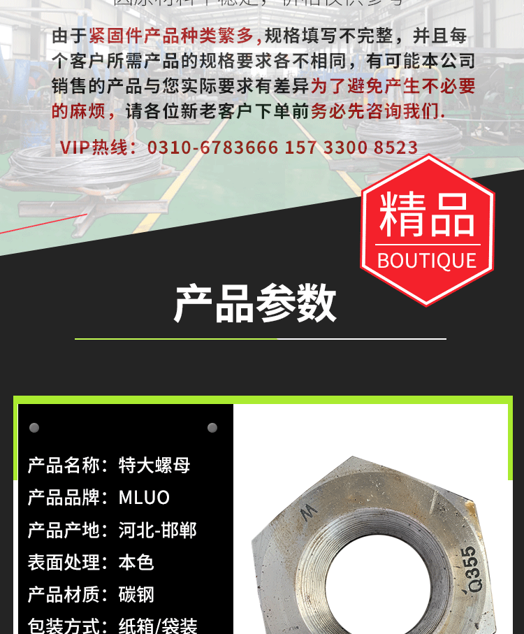 本网页所展示的有关【定制特大螺母 45#高强度加大加厚螺母细牙粗牙Q355大螺母超大螺母_紧固件&五金件_河北麦螺紧固件制造有限公司】的信息/图片/参数等由全球零部件网的会员【河北麦螺紧固件制造有限公司】提供,由全球零部件网会员【河北麦螺紧固件制造有限公司】自行对信息/图片/参数等的真实性、准确性和合法性负责,本平台(本网站)仅提供展示服务,请谨慎交易,因交易而产生的法律关系及法律纠纷由您自行协商解决,本平台(本网站)对此不承担任何责任。您在本网页可以浏览【定制特大螺母 45#高强度加大加厚螺母细牙粗牙Q355大螺母超大螺母_紧固件&五金件_河北麦螺紧固件制造有限公司】有关的信息/图片/价格等及提供【定制特大螺母 45#高强度加大加厚螺母细牙粗牙Q355大螺母超大螺母_紧固件&五金件_河北麦螺紧固件制造有限公司】的商家公司简介、江南(中国)等信息。