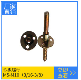 m6m8m10公制铁板螺母 英制1/4 5/16 3/8三孔圆柱螺母家具夹板螺母 规格种类全。有公制也有英制。其结构为下面3孔固定。M6(1/4)的一般是配3*15的KA自攻钉,M8(5/16)的一般是配4*20KA自攻钉。M10(3/8)的一般是配5*20KA自攻钉。更多技术及产品参数可咨询黄生。13712384605 备注:需开增值票的要另加13个点。