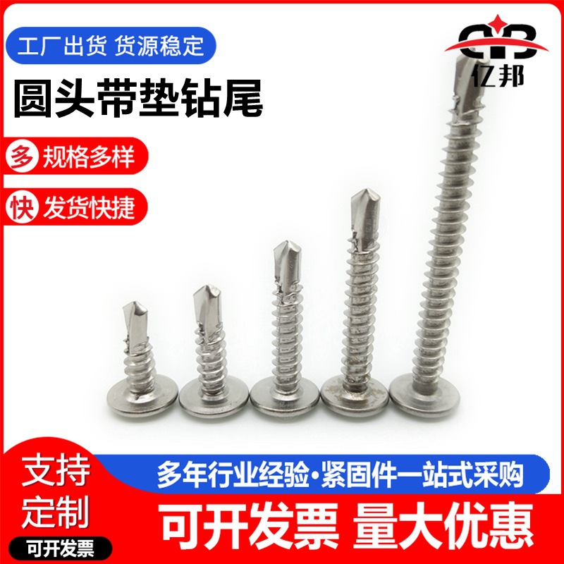 批发410圆头带垫钻尾螺钉 圆头自攻自钻螺丝 十字圆头带垫 ST4.2
