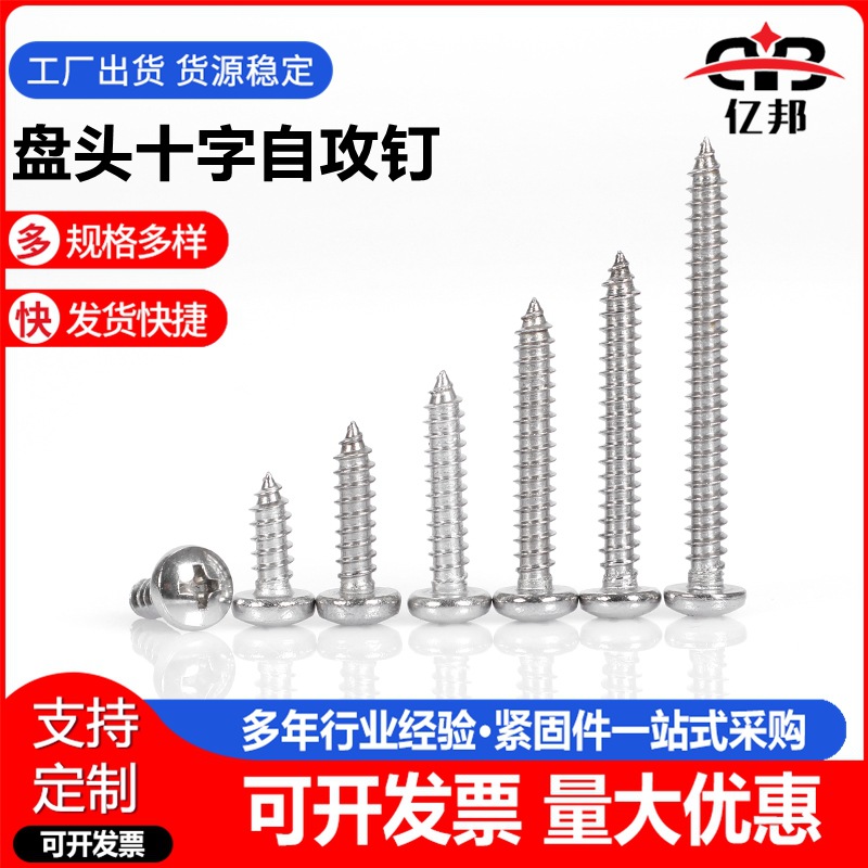 304不锈钢盘头十字自攻钉 圆头自攻钉 伞头自攻M2.9-M5.5规格
