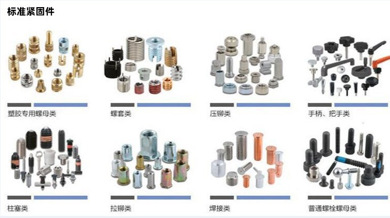 锈钢螺母、压铆螺母 滚花铜螺母、压铆螺母柱、盲孔铆螺柱、不通孔压铆螺母柱、铆螺母柱、拉销、分度销、带环拉销、球头 拉销、铆接拉销、铜螺丝、铁螺丝、铝螺丝 不锈钢螺丝、压铆螺丝、滚花铜螺丝等各种各类五金配件公司产品广泛应用于箱包五金、家具、家电、健身器材、电子电器产品、通讯设备、汽车制造等多种生产制造领域。 严格执行ISO9001质量标准,选择良好的材料、表面处理,能有效的保证产品的表面保护层及抗腐蚀,表面硬度,扭力强度等各项性能。以满足客户的各种要求。为您提供高品质的产品及优良的服务。坚持" 客户至上,品质“,原则为广大客户提供的服务。