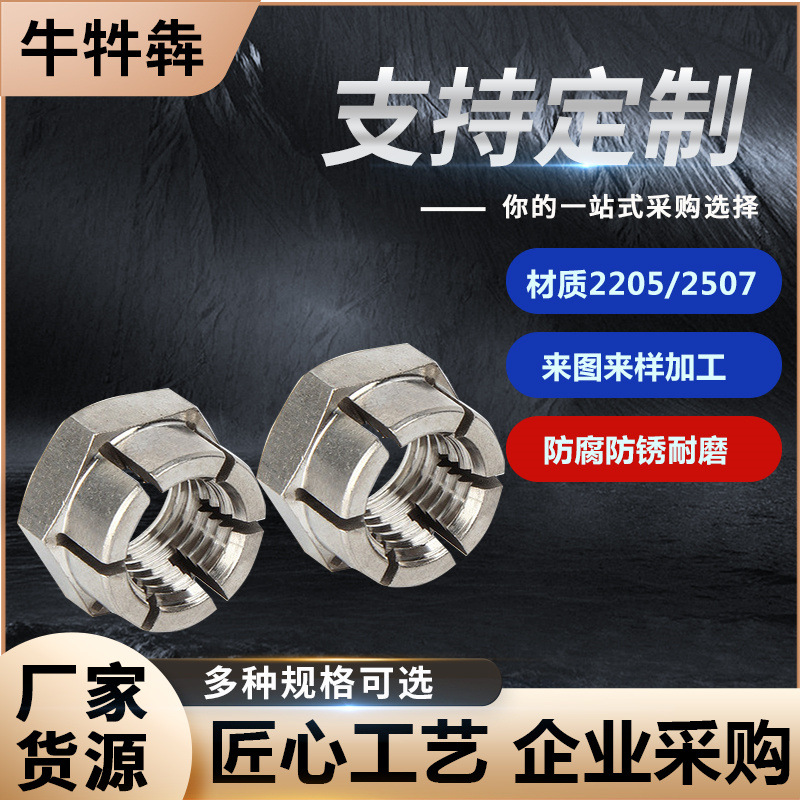 哈氏合金开槽螺母防滑防松316自锁螺母304不锈钢全金属自锁紧螺母