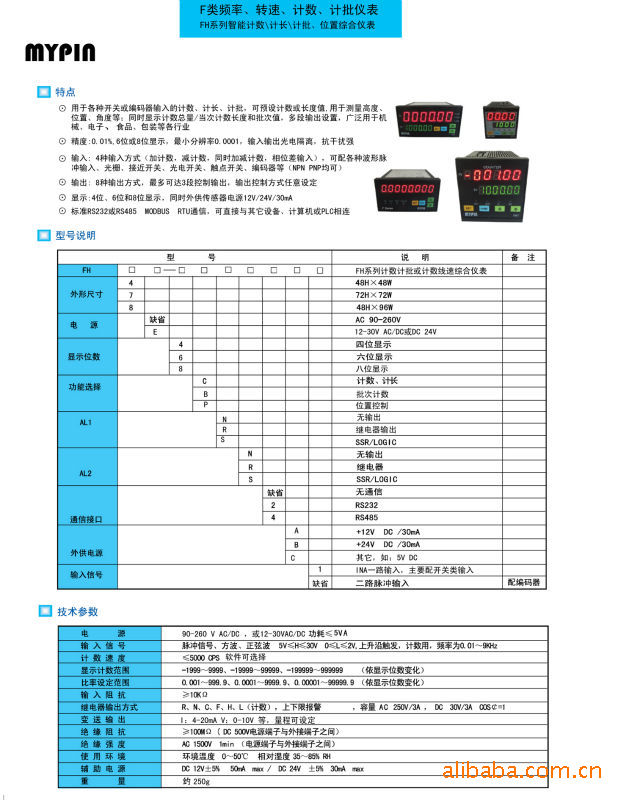 7、外形尺寸: FH8:48*96*80 mm ,外壳符合IP65标准
