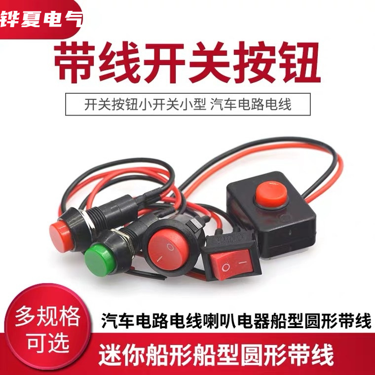 开关按钮小开关小型 汽车电路电线喇叭电器迷你船形船型圆形带线