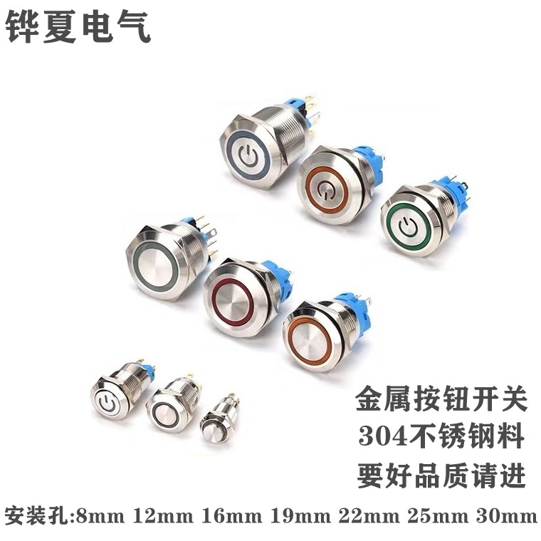 8/12/16/19/22mm金属按钮开关带灯自锁复位不锈钢按钮开关镀金脚