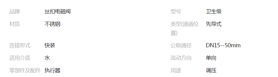 本网页所展示的有关【304卫生级丝扣电磁阀_管材及管接头_温州洁宝流体管件有限公司】的信息/图片/参数等由全球零部件网的会员【温州洁宝流体管件有限公司】提供,由全球零部件网会员【温州洁宝流体管件有限公司】自行对信息/图片/参数等的真实性、准确性和合法性负责,本平台(本网站)仅提供展示服务,请谨慎交易,因交易而产生的法律关系及法律纠纷由您自行协商解决,本平台(本网站)对此不承担任何责任。您在本网页可以浏览【304卫生级丝扣电磁阀_管材及管接头_温州洁宝流体管件有限公司】有关的信息/图片/价格等及提供【304卫生级丝扣电磁阀_管材及管接头_温州洁宝流体管件有限公司】的商家公司简介、江南(中国)等信息。