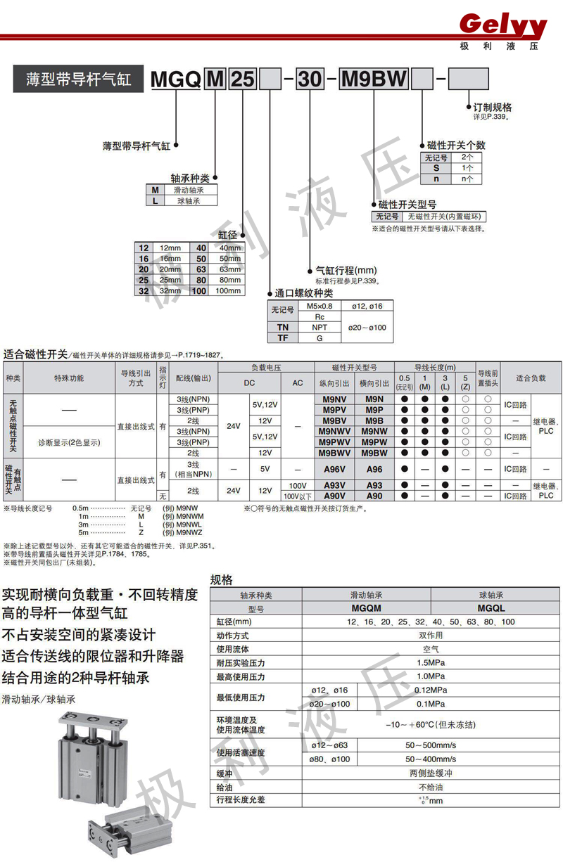 规格MGQM25-20,MGQM25-30,MGQM25-40,MGQM25-50,MGQM25-100,MGQM25-200,MGQM25-300,MGQM25-500,MGQM32-25,MGQM32-50,MGQM32-100,MGQM32-200,MGQM32-300,MGQM32-400,MGQM32-500,MGQM40-25,MGQM40-50,MGQM40-100,MGQM40-200,MGQM40-300,MGQM40-500,25缸径L轴承另加49元,32/40缸径L轴承另加61元