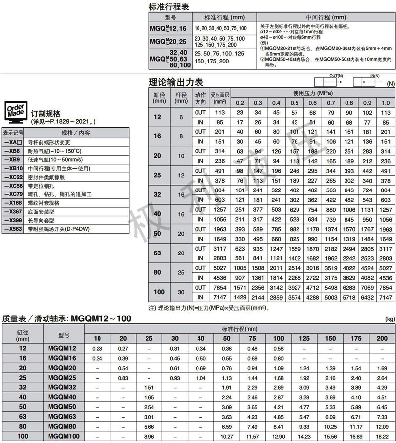 订货号MGQM/L25/32/40-25/50/100/200/300/500