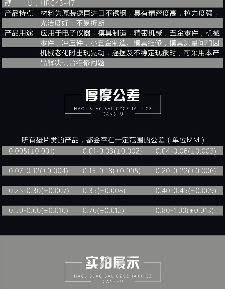 本网页所展示的有关【德国西德H+S不锈钢精密模具间隙片 矽钢片垫片塞尺0.005-1.0*12.7_五金工具_东莞市祺立模具有限公司】的信息/图片/参数等由全球零部件网的会员【东莞市祺立模具有限公司】提供,由全球零部件网会员【东莞市祺立模具有限公司】自行对信息/图片/参数等的真实性、准确性和合法性负责,本平台(本网站)仅提供展示服务,请谨慎交易,因交易而产生的法律关系及法律纠纷由您自行协商解决,本平台(本网站)对此不承担任何责任。您在本网页可以浏览【德国西德H+S不锈钢精密模具间隙片 矽钢片垫片塞尺0.005-1.0*12.7_五金工具_东莞市祺立模具有限公司】有关的信息/图片/价格等及提供【德国西德H+S不锈钢精密模具间隙片 矽钢片垫片塞尺0.005-1.0*12.7_五金工具_东莞市祺立模具有限公司】的商家公司简介、江南(中国)等信息。