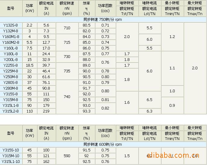 Y系列电动机,额定电压为380V,额定功率为50HZ,3KW及以下为“Y"接法,4KW及以上为“△”接法。