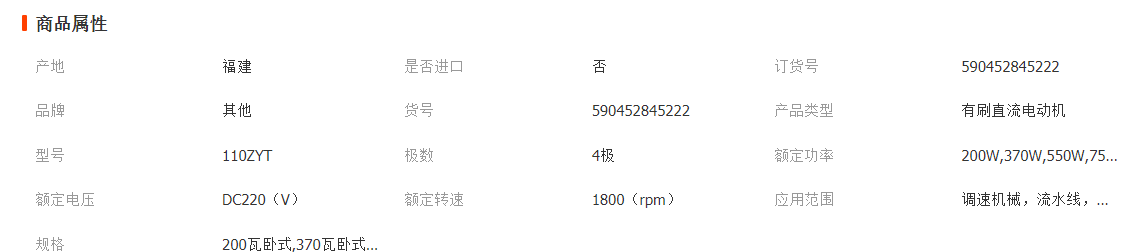 我公司可现货供应永磁直流电机,功率:200W-750W,电压:DC220V,频率:50HZ;转速:1800转/分;安装方式:卧式和立式,安装法兰:小圆法兰,圆法兰,方法兰。轴伸大小:14和19(轴伸标准的是14和19,轴伸是16的请说明)。下单前请参考下列“选型”表,报“型号规格”,或先联系客服确认,修改运费(网上运费设置仅供参考),不同地区运费不同,请先咨询,谢谢您的支持。