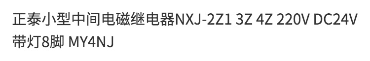 本网页所展示的有关【正泰小型中间电磁继电器NXJ-2Z1 3Z 4Z 220V DC24V带灯8脚 MY4NJ_继电器_苏州金圣航智能装备有限公司】的信息/图片/参数等由全球零部件网的会员【苏州金圣航智能装备有限公司】提供,由全球零部件网会员【苏州金圣航智能装备有限公司】自行对信息/图片/参数等的真实性、准确性和合法性负责,本平台(本网站)仅提供展示服务,请谨慎交易,因交易而产生的法律关系及法律纠纷由您自行协商解决,本平台(本网站)对此不承担任何责任。您在本网页可以浏览【正泰小型中间电磁继电器NXJ-2Z1 3Z 4Z 220V DC24V带灯8脚 MY4NJ_继电器_苏州金圣航智能装备有限公司】有关的信息/图片/价格等及提供【正泰小型中间电磁继电器NXJ-2Z1 3Z 4Z 220V DC24V带灯8脚 MY4NJ_继电器_苏州金圣航智能装备有限公司】的商家公司简介、江南(中国)等信息。