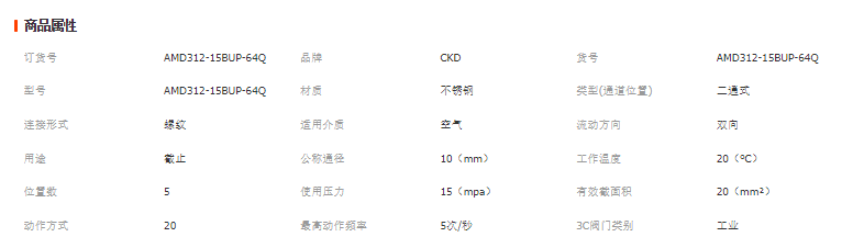 本网页所展示的有关【日本CKD液用阀AMD312-15BUP-64Q 欢迎询价_电磁阀_台州市捷迈商贸有限公司】的信息/图片/参数等由全球零部件网的会员【台州市捷迈商贸有限公司】提供,由全球零部件网会员【台州市捷迈商贸有限公司】自行对信息/图片/参数等的真实性、准确性和合法性负责,本平台(本网站)仅提供展示服务,请谨慎交易,因交易而产生的法律关系及法律纠纷由您自行协商解决,本平台(本网站)对此不承担任何责任。您在本网页可以浏览【日本CKD液用阀AMD312-15BUP-64Q 欢迎询价_电磁阀_台州市捷迈商贸有限公司】有关的信息/图片/价格等及提供【日本CKD液用阀AMD312-15BUP-64Q 欢迎询价_电磁阀_台州市捷迈商贸有限公司】的商家公司简介、江南(中国)等信息。