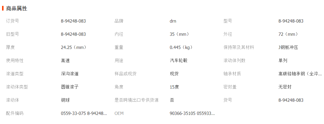 我公司专业生产8-94248-083圆锥滚子轴承,能为客户提样本图片,需要此型号配合安装尺寸、重量、价格、报价等资料请联系销售人员!库房备有大量现货,均可当天发货。