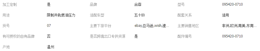 本网页所展示的有关【燃油共轨泄压阀095420-0710限压阀卸荷阀_阀门_瑞安市合森汽车配件厂】的信息/图片/参数等由全球零部件网的会员【瑞安市合森汽车配件厂】提供,由全球零部件网会员【瑞安市合森汽车配件厂】自行对信息/图片/参数等的真实性、准确性和合法性负责,本平台(本网站)仅提供展示服务,请谨慎交易,因交易而产生的法律关系及法律纠纷由您自行协商解决,本平台(本网站)对此不承担任何责任。您在本网页可以浏览【燃油共轨泄压阀095420-0710限压阀卸荷阀_阀门_瑞安市合森汽车配件厂】有关的信息/图片/价格等及提供【燃油共轨泄压阀095420-0710限压阀卸荷阀_阀门_瑞安市合森汽车配件厂】的商家公司简介、江南(中国)等信息。