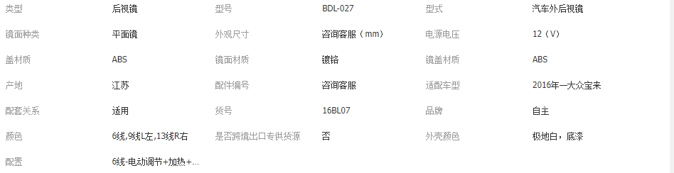 本网页所展示的有关【汽车配件广角后视镜适用于大众宝来汽车倒车镜 汽车辅助镜批发_后视镜_丹阳奔得利汽车配件有限公司】的信息/图片/参数等由全球零部件网的会员【丹阳奔得利汽车配件有限公司】提供,由全球零部件网会员【丹阳奔得利汽车配件有限公司】自行对信息/图片/参数等的真实性、准确性和合法性负责,本平台(本网站)仅提供展示服务,请谨慎交易,因交易而产生的法律关系及法律纠纷由您自行协商解决,本平台(本网站)对此不承担任何责任。您在本网页可以浏览【汽车配件广角后视镜适用于大众宝来汽车倒车镜 汽车辅助镜批发_后视镜_丹阳奔得利汽车配件有限公司】有关的信息/图片/价格等及提供【汽车配件广角后视镜适用于大众宝来汽车倒车镜 汽车辅助镜批发_后视镜_丹阳奔得利汽车配件有限公司】的商家公司简介、江南(中国)等信息。