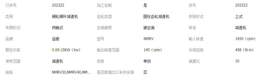 本网页所展示的有关【NMRV30减速器非标铝合金蜗轮蜗杆减速机锡青铜耐磨型NMRV减速机_液压减速机_德州涵豪减速机有限公司】的信息/图片/参数等由全球零部件网的会员【德州涵豪减速机有限公司】提供,由全球零部件网会员【德州涵豪减速机有限公司】自行对信息/图片/参数等的真实性、准确性和合法性负责,本平台(本网站)仅提供展示服务,请谨慎交易,因交易而产生的法律关系及法律纠纷由您自行协商解决,本平台(本网站)对此不承担任何责任。您在本网页可以浏览【NMRV30减速器非标铝合金蜗轮蜗杆减速机锡青铜耐磨型NMRV减速机_液压减速机_德州涵豪减速机有限公司】有关的信息/图片/价格等及提供【NMRV30减速器非标铝合金蜗轮蜗杆减速机锡青铜耐磨型NMRV减速机_液压减速机_德州涵豪减速机有限公司】的商家公司简介、江南(中国)等信息。
