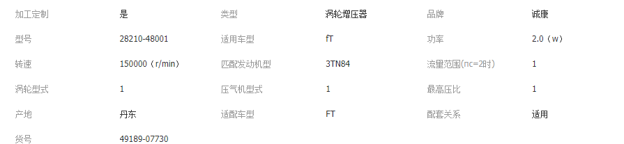 立即发布求购意向本网页所展示的有关【28210-48001 49189-07730 涡轮增压器_涡轮增压器及相关零件_凤城市诚康汽配经营部】的信息/图片/参数等由全球零部件网的会员【凤城市诚康汽配经营部】提供,由全球零部件网会员【凤城市诚康汽配经营部】自行对信息/图片/参数等的真实性、准确性和合法性负责,本平台(本网站)仅提供展示服务,请谨慎交易,因交易而产生的法律关系及法律纠纷由您自行协商解决,本平台(本网站)对此不承担任何责任。您在本网页可以浏览【28210-48001 49189-07730 涡轮增压器_涡轮增压器及相关零件_凤城市诚康汽配经营部】有关的信息/图片/价格等及提供【28210-48001 49189-07730 涡轮增压器_涡轮增压器及相关零件_凤城市诚康汽配经营部】的商家公司简介、江南(中国)等信息。