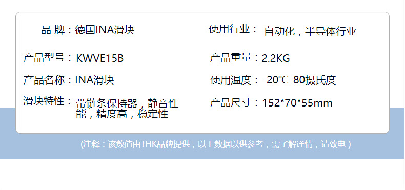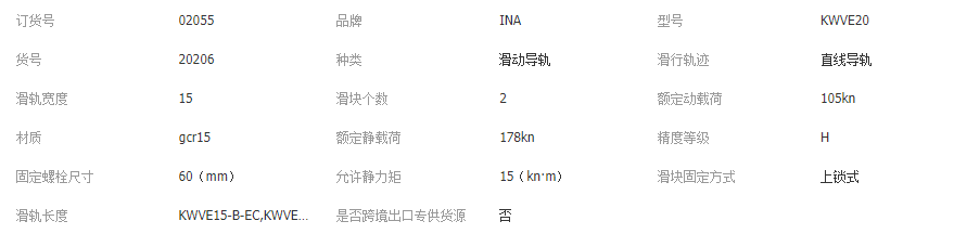 本网页所展示的有关【INA直线导轨 INA滑块 KWVE20-B-EC KUVE20B-EC_导轨_京澎机械设备(上海)有限公司】的信息/图片/参数等由全球零部件网的会员【京澎机械设备(上海)有限公司】提供,由全球零部件网会员【京澎机械设备(上海)有限公司】自行对信息/图片/参数等的真实性、准确性和合法性负责,本平台(本网站)仅提供展示服务,请谨慎交易,因交易而产生的法律关系及法律纠纷由您自行协商解决,本平台(本网站)对此不承担任何责任。您在本网页可以浏览【INA直线导轨 INA滑块 KWVE20-B-EC KUVE20B-EC_导轨_京澎机械设备(上海)有限公司】有关的信息/图片/价格等及提供【INA直线导轨 INA滑块 KWVE20-B-EC KUVE20B-EC_导轨_京澎机械设备(上海)有限公司】的商家公司简介、江南(中国)等信息。