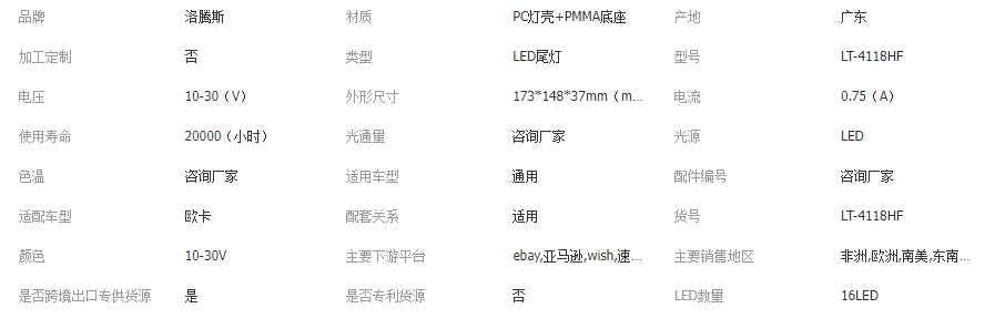 本网页所展示的有关【#优品#牧马人后尾灯 吉Pu皮卡车灯 刹车灯 行驶灯雾灯爆闪 10-30V_汽车灯具_广州洛滕斯照明电器有限公司】的信息/图片/参数等由全球零部件网的会员【广州洛滕斯照明电器有限公司】提供,由全球零部件网会员【广州洛滕斯照明电器有限公司】自行对信息/图片/参数等的真实性、准确性和合法性负责,本平台(本网站)仅提供展示服务,请谨慎交易,因交易而产生的法律关系及法律纠纷由您自行协商解决,本平台(本网站)对此不承担任何责任。您在本网页可以浏览【#优品#牧马人后尾灯 吉Pu皮卡车灯 刹车灯 行驶灯雾灯爆闪 10-30V_汽车灯具_广州洛滕斯照明电器有限公司】有关的信息/图片/价格等及提供【#优品#牧马人后尾灯 吉Pu皮卡车灯 刹车灯 行驶灯雾灯爆闪 10-30V_汽车灯具_广州洛滕斯照明电器有限公司】的商家公司简介、江南(中国)等信息。
