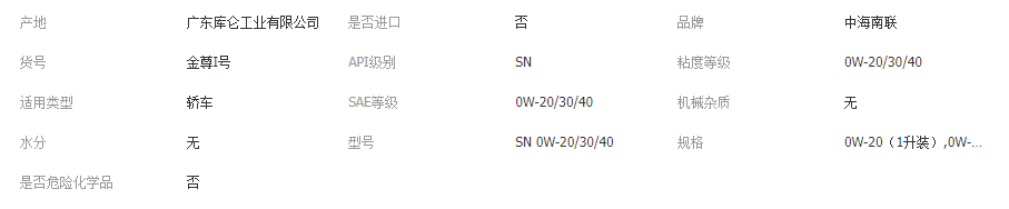 本网页所展示的有关【库仑金尊1号PAO全合成机油低噪低耗SN级15000公里发动机润滑油_润滑油_广东中海南联能源有限公司惠州分公司】的信息/图片/参数等由全球零部件网的会员【广东中海南联能源有限公司惠州分公司】提供,由全球零部件网会员【广东中海南联能源有限公司惠州分公司】自行对信息/图片/参数等的真实性、准确性和合法性负责,本平台(本网站)仅提供展示服务,请谨慎交易,因交易而产生的法律关系及法律纠纷由您自行协商解决,本平台(本网站)对此不承担任何责任。您在本网页可以浏览【库仑金尊1号PAO全合成机油低噪低耗SN级15000公里发动机润滑油_润滑油_广东中海南联能源有限公司惠州分公司】有关的信息/图片/价格等及提供【库仑金尊1号PAO全合成机油低噪低耗SN级15000公里发动机润滑油_润滑油_广东中海南联能源有限公司惠州分公司】的商家公司简介、江南(中国)等信息。