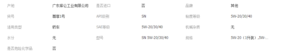 本网页所展示的有关【库仑尊享1号全合成降噪减震机油SN级10000公里发动机润滑油_润滑油_广东中海南联能源有限公司惠州分公司】的信息/图片/参数等由全球零部件网的会员【广东中海南联能源有限公司惠州分公司】提供,由全球零部件网会员【广东中海南联能源有限公司惠州分公司】自行对信息/图片/参数等的真实性、准确性和合法性负责,本平台(本网站)仅提供展示服务,请谨慎交易,因交易而产生的法律关系及法律纠纷由您自行协商解决,本平台(本网站)对此不承担任何责任。您在本网页可以浏览【库仑尊享1号全合成降噪减震机油SN级10000公里发动机润滑油_润滑油_广东中海南联能源有限公司惠州分公司】有关的信息/图片/价格等及提供【库仑尊享1号全合成降噪减震机油SN级10000公里发动机润滑油_润滑油_广东中海南联能源有限公司惠州分公司】的商家公司简介、江南(中国)等信息。