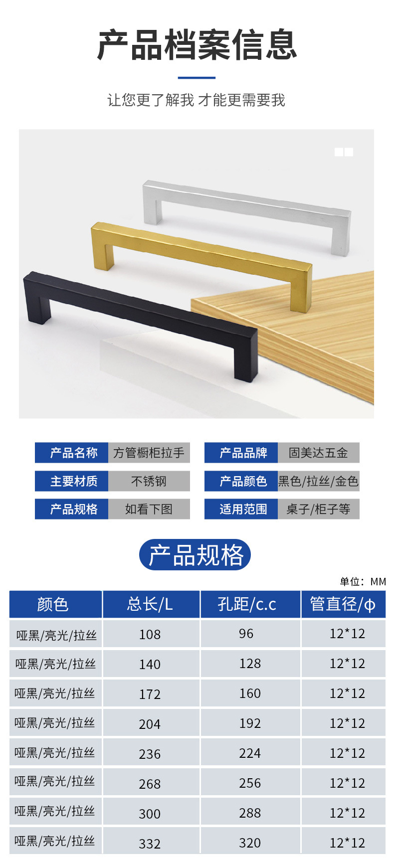 本网页所展示的有关【304不锈钢方管空心拉手衣柜抽屉橱柜家具门把手淋浴房玻璃门拉手_拉手_高要区金利镇固美达五金厂】的信息/图片/参数等由全球零部件网的会员【高要区金利镇固美达五金厂】提供,由全球零部件网会员【高要区金利镇固美达五金厂】自行对信息/图片/参数等的真实性、准确性和合法性负责,本平台(本网站)仅提供展示服务,请谨慎交易,因交易而产生的法律关系及法律纠纷由您自行协商解决,本平台(本网站)对此不承担任何责任。您在本网页可以浏览【304不锈钢方管空心拉手衣柜抽屉橱柜家具门把手淋浴房玻璃门拉手_拉手_高要区金利镇固美达五金厂】有关的信息/图片/价格等及提供【304不锈钢方管空心拉手衣柜抽屉橱柜家具门把手淋浴房玻璃门拉手_拉手_高要区金利镇固美达五金厂】的商家公司简介、江南(中国)等信息。