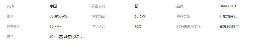 本网页所展示的有关【高精度35行星减速步进电机 机身高60MM 电压12V PG5.18 14 19 27_直流电机_广州汉邦电机有限公司】的信息/图片/参数等由全球零部件网的会员【广州汉邦电机有限公司】提供,由全球零部件网会员【广州汉邦电机有限公司】自行对信息/图片/参数等的真实性、准确性和合法性负责,本平台(本网站)仅提供展示服务,请谨慎交易,因交易而产生的法律关系及法律纠纷由您自行协商解决,本平台(本网站)对此不承担任何责任。您在本网页可以浏览【高精度35行星减速步进电机 机身高60MM 电压12V PG5.18 14 19 27_直流电机_广州汉邦电机有限公司】有关的信息/图片/价格等及提供【高精度35行星减速步进电机 机身高60MM 电压12V PG5.18 14 19 27_直流电机_广州汉邦电机有限公司】的商家公司简介、江南(中国)等信息。