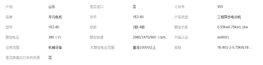 本网页所展示的有关【2极4极山东开元电机YE2三相异步电动机0.55kw0.75kw1.1kw铜线电机_直流电机_佛山市栋一机电有限公司】的信息/图片/参数等由全球零部件网的会员【佛山市栋一机电有限公司】提供,由全球零部件网会员【佛山市栋一机电有限公司】自行对信息/图片/参数等的真实性、准确性和合法性负责,本平台(本网站)仅提供展示服务,请谨慎交易,因交易而产生的法律关系及法律纠纷由您自行协商解决,本平台(本网站)对此不承担任何责任。您在本网页可以浏览【2极4极山东开元电机YE2三相异步电动机0.55kw0.75kw1.1kw铜线电机_直流电机_佛山市栋一机电有限公司】有关的信息/图片/价格等及提供【2极4极山东开元电机YE2三相异步电动机0.55kw0.75kw1.1kw铜线电机_直流电机_佛山市栋一机电有限公司】的商家公司简介、江南(中国)等信息。