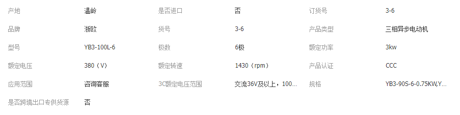 本网页所展示的有关【三相异步隔爆电机YB3系列0.75-250KW6级防爆电机BT4国标铜线电机_交流电机_台州浙欧机电有限公司】的信息/图片/参数等由全球零部件网的会员【台州浙欧机电有限公司】提供,由全球零部件网会员【台州浙欧机电有限公司】自行对信息/图片/参数等的真实性、准确性和合法性负责,本平台(本网站)仅提供展示服务,请谨慎交易,因交易而产生的法律关系及法律纠纷由您自行协商解决,本平台(本网站)对此不承担任何责任。您在本网页可以浏览【三相异步隔爆电机YB3系列0.75-250KW6级防爆电机BT4国标铜线电机_交流电机_台州浙欧机电有限公司】有关的信息/图片/价格等及提供【三相异步隔爆电机YB3系列0.75-250KW6级防爆电机BT4国标铜线电机_交流电机_台州浙欧机电有限公司】的商家公司简介、江南(中国)等信息。