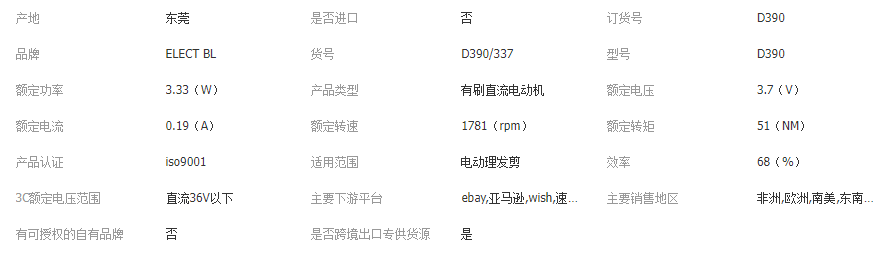 本网页所展示的有关【390直流微型电机 电动理发器磨甲器按摩器小电机榨汁杯高速 小马达_直流电机_东莞市兵力电子科技有限公司】的信息/图片/参数等由全球零部件网的会员【东莞市兵力电子科技有限公司】提供,由全球零部件网会员【东莞市兵力电子科技有限公司】自行对信息/图片/参数等的真实性、准确性和合法性负责,本平台(本网站)仅提供展示服务,请谨慎交易,因交易而产生的法律关系及法律纠纷由您自行协商解决,本平台(本网站)对此不承担任何责任。您在本网页可以浏览【390直流微型电机 电动理发器磨甲器按摩器小电机榨汁杯高速 小马达_直流电机_东莞市兵力电子科技有限公司】有关的信息/图片/价格等及提供【390直流微型电机 电动理发器磨甲器按摩器小电机榨汁杯高速 小马达_直流电机_东莞市兵力电子科技有限公司】的商家公司简介、江南(中国)等信息。