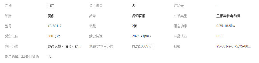 本网页所展示的有关【YS铝壳0.75千瓦-18.5千瓦三相异步电动机2极立卧式交流电动机批发_交流电机_上海菱傲电机有限公司】的信息/图片/参数等由全球零部件网的会员【上海菱傲电机有限公司】提供,由全球零部件网会员【上海菱傲电机有限公司】自行对信息/图片/参数等的真实性、准确性和合法性负责,本平台(本网站)仅提供展示服务,请谨慎交易,因交易而产生的法律关系及法律纠纷由您自行协商解决,本平台(本网站)对此不承担任何责任。您在本网页可以浏览【YS铝壳0.75千瓦-18.5千瓦三相异步电动机2极立卧式交流电动机批发_交流电机_上海菱傲电机有限公司】有关的信息/图片/价格等及提供【YS铝壳0.75千瓦-18.5千瓦三相异步电动机2极立卧式交流电动机批发_交流电机_上海菱傲电机有限公司】的商家公司简介、江南(中国)等信息。