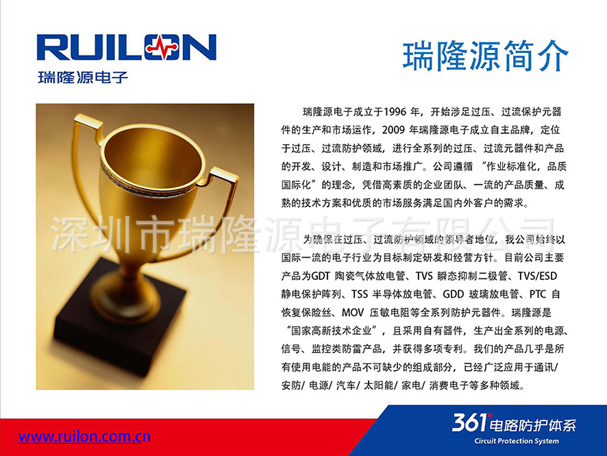 瑞隆源电子是一家专业生产过流过压保护器件的厂商所提供给客户的产品均为我司工厂生产,品牌就是做品质,每个细节完美呈现,这是我们的发展方向与路线。请认准(RUILON)瑞隆源品牌。