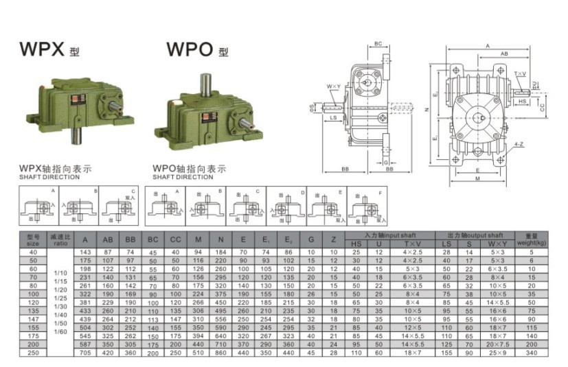 5、输出、输入轴位置方向有输入轴在下及在上;输出轴向上及向下;输入轴向上及向下。